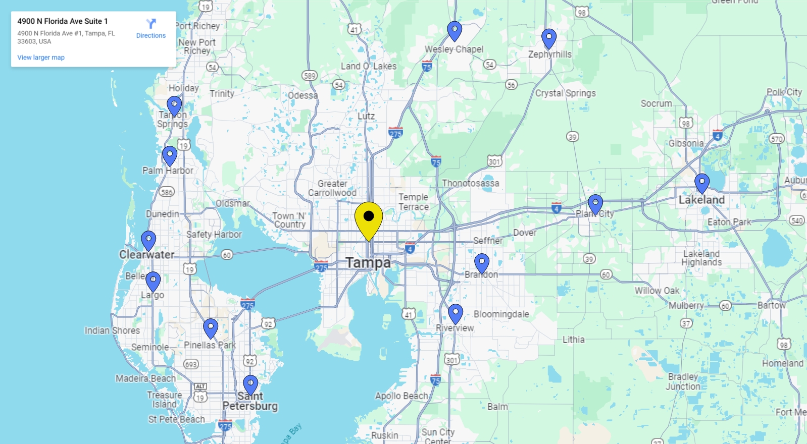 At Business Local Listings LLC, we delight ourselves in providing search engine marketing services to customers throughout the Tampa Bay area and beyond. Our coverage includes cities and towns like Tampa, Wesley Chapel, Zephyrhills, Plant City, Lakeland, Brandon, Riverview, as well as St. Petersburg, Pinellas Park, Largo, Clearwater, and Palm Harbor in Pinellas County. We also have a strong presence in Tarpon Springs to the northwest.
